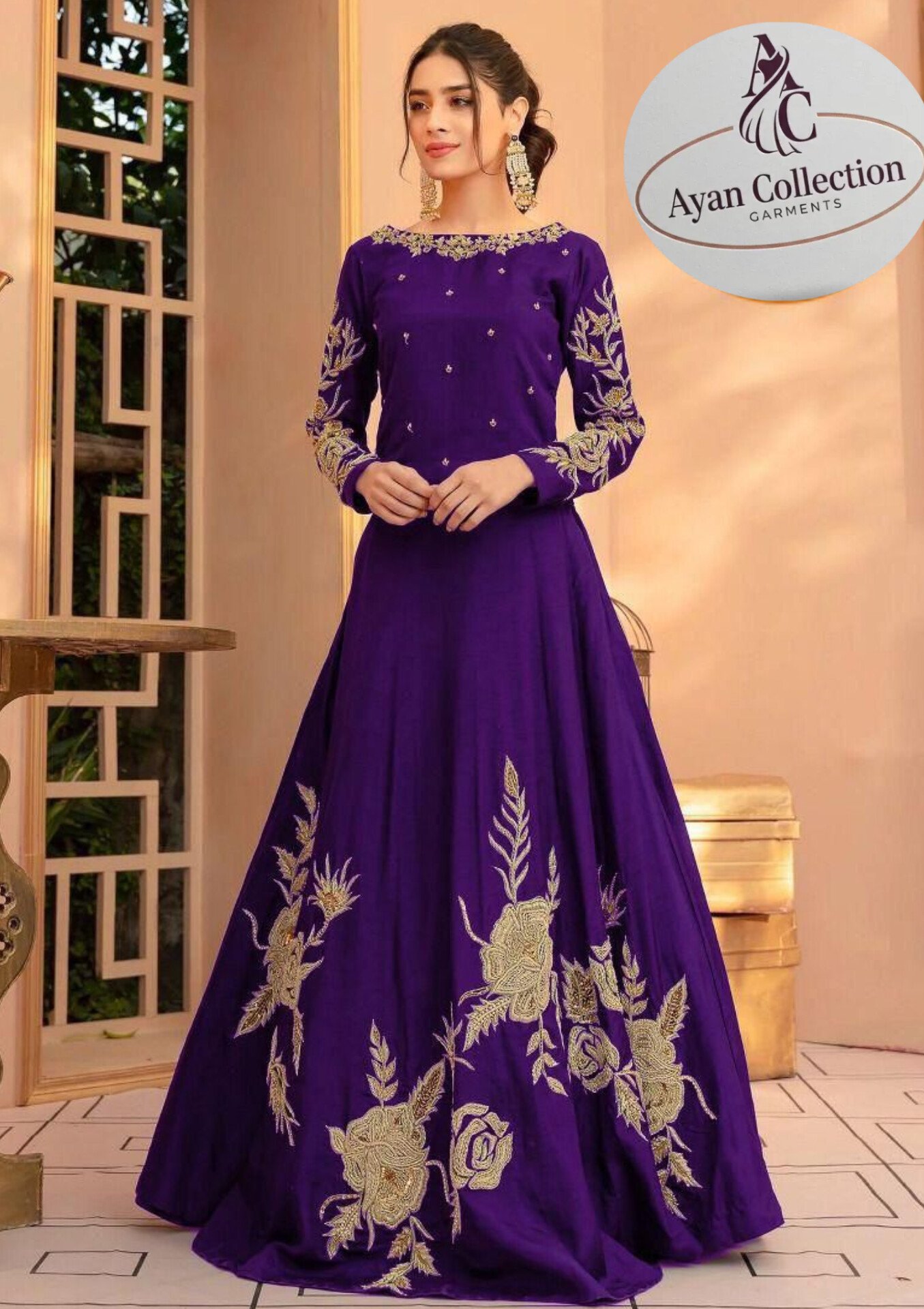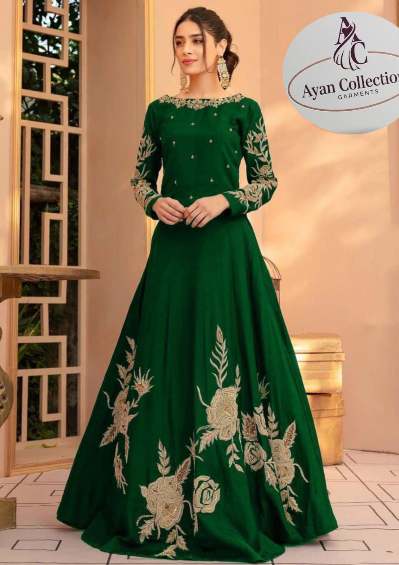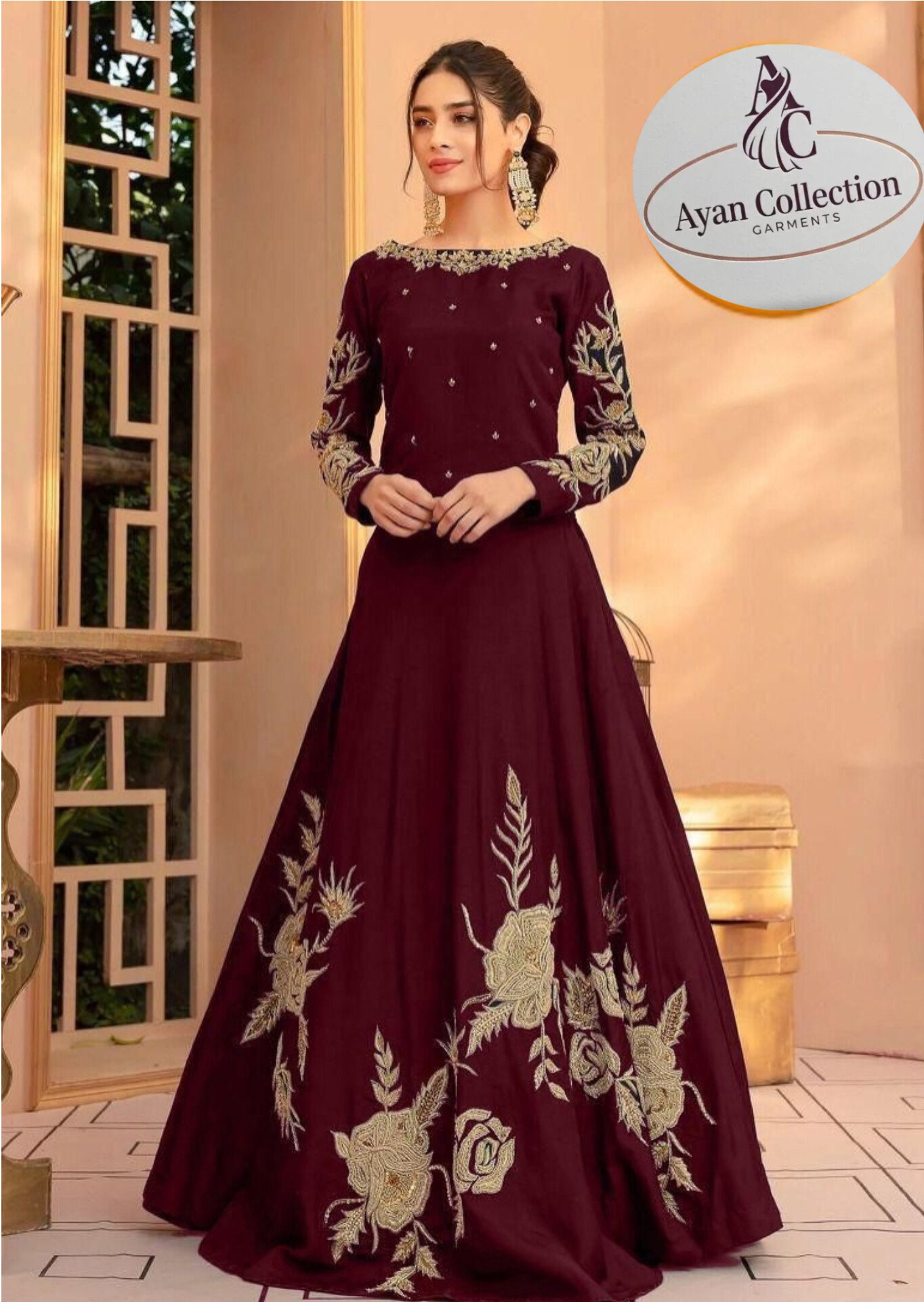 1pcs woman stiched shamoze silk embroidered maxi