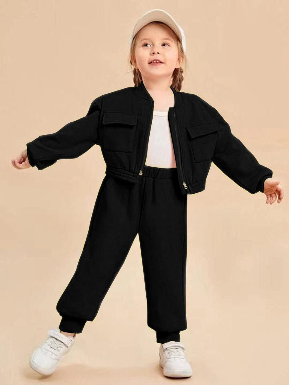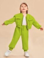 2pcs girls fleece plain zipper tracksuit