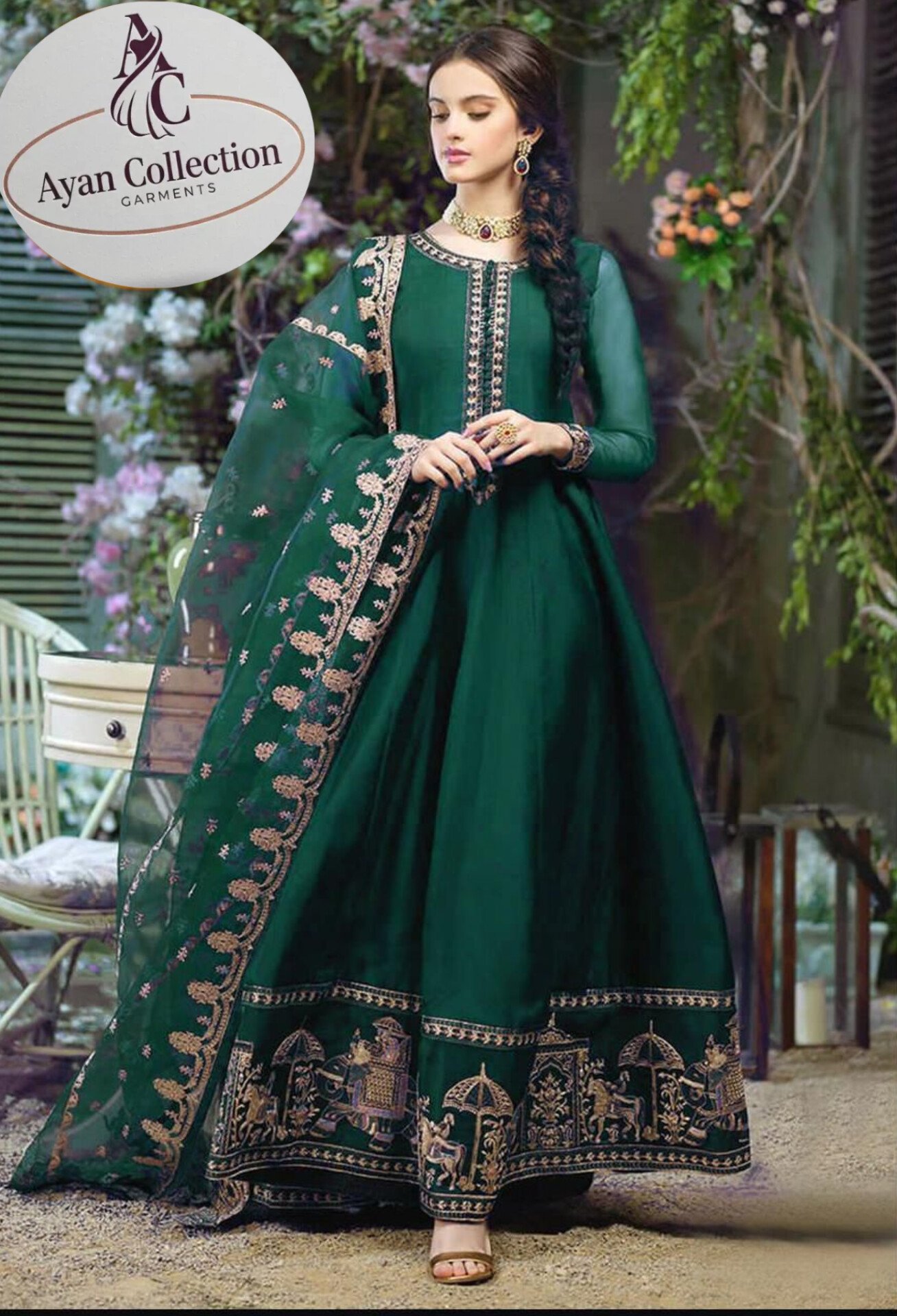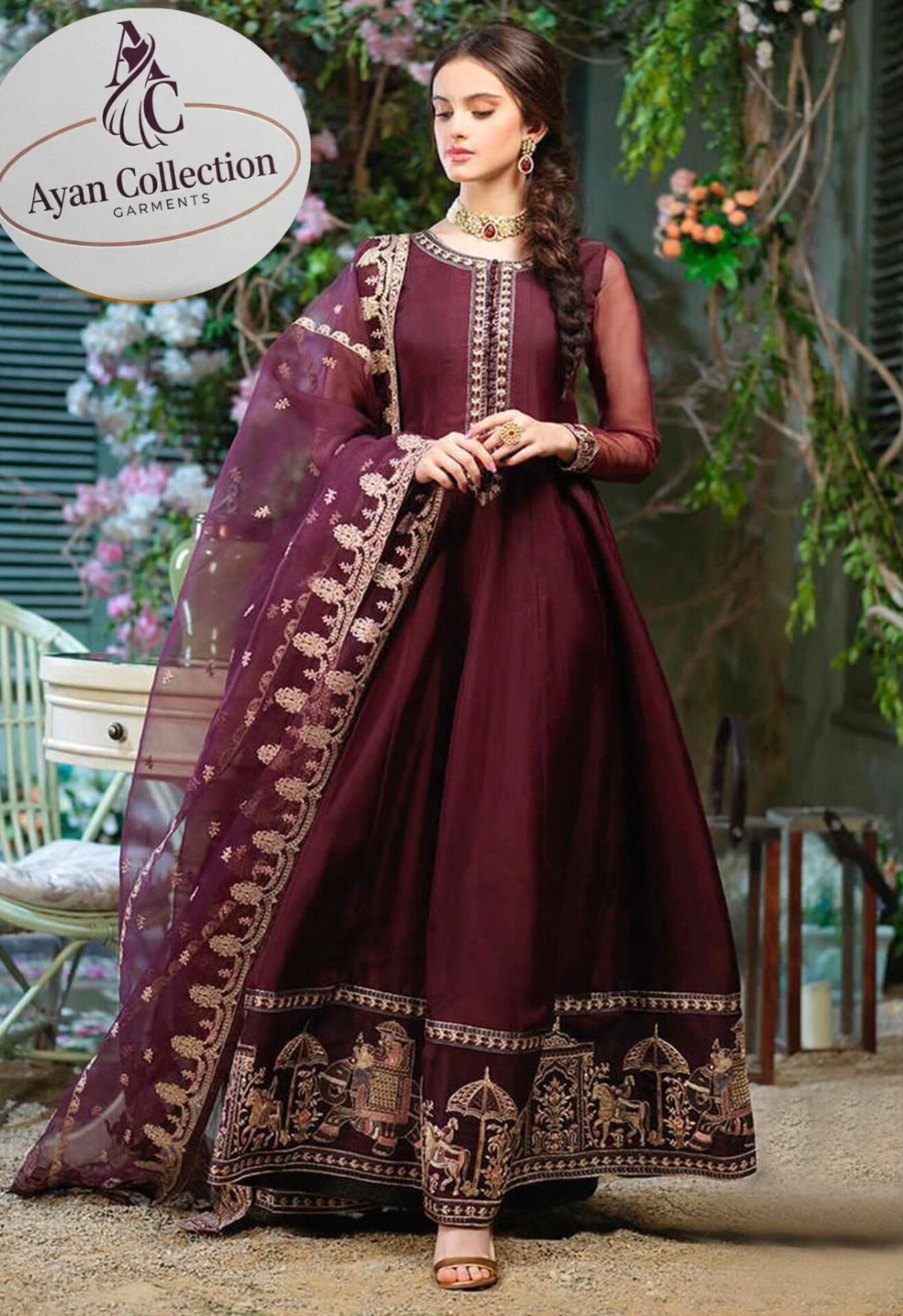 3pc woman stiched embroidered maxi suite stuff shiffon by Ayan collection garments