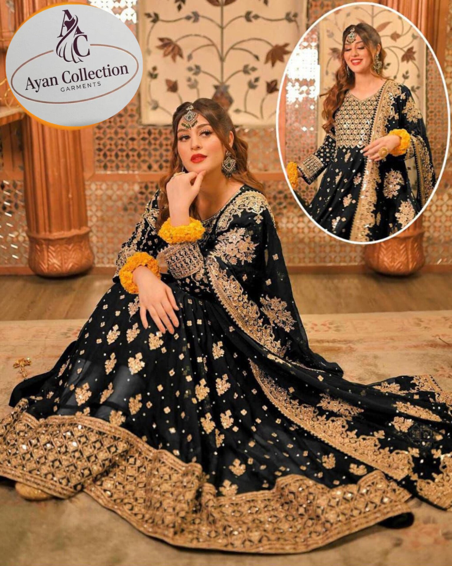 • Front Crystal HandWork On Chest,Border With Heavy Embroidered Maxi,Dupatta And Trouser 3Pcs
